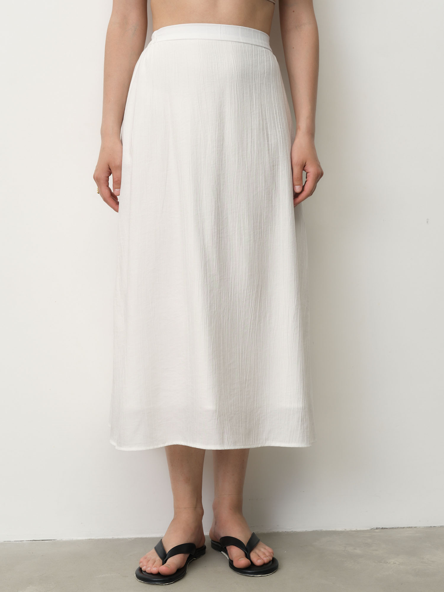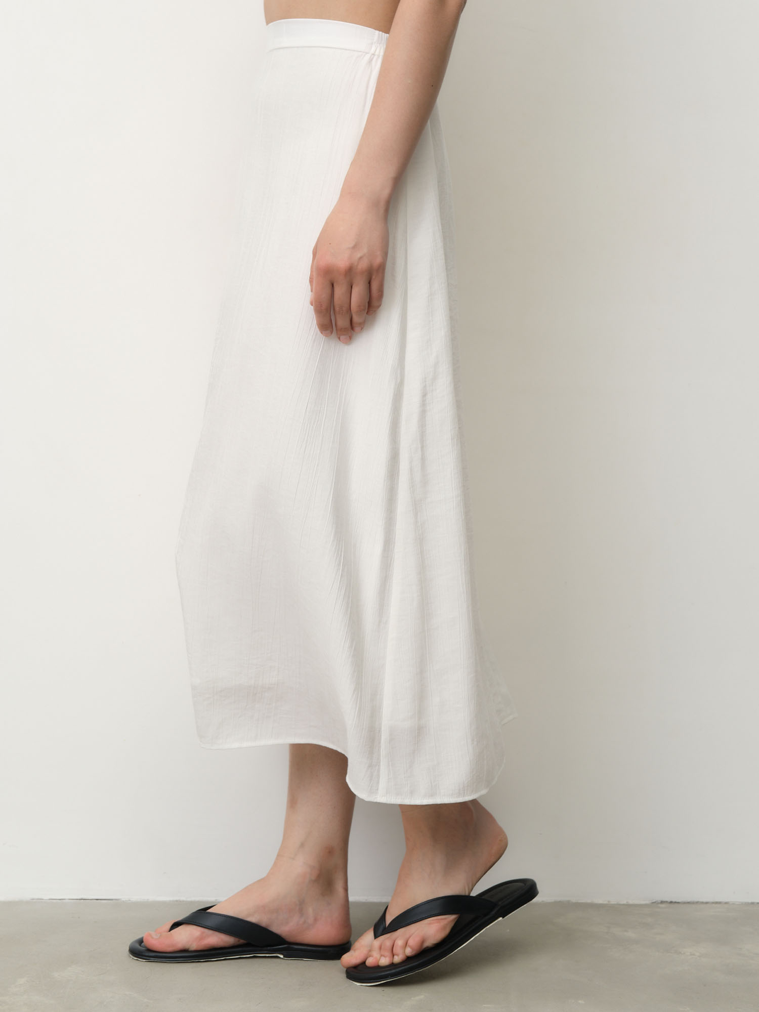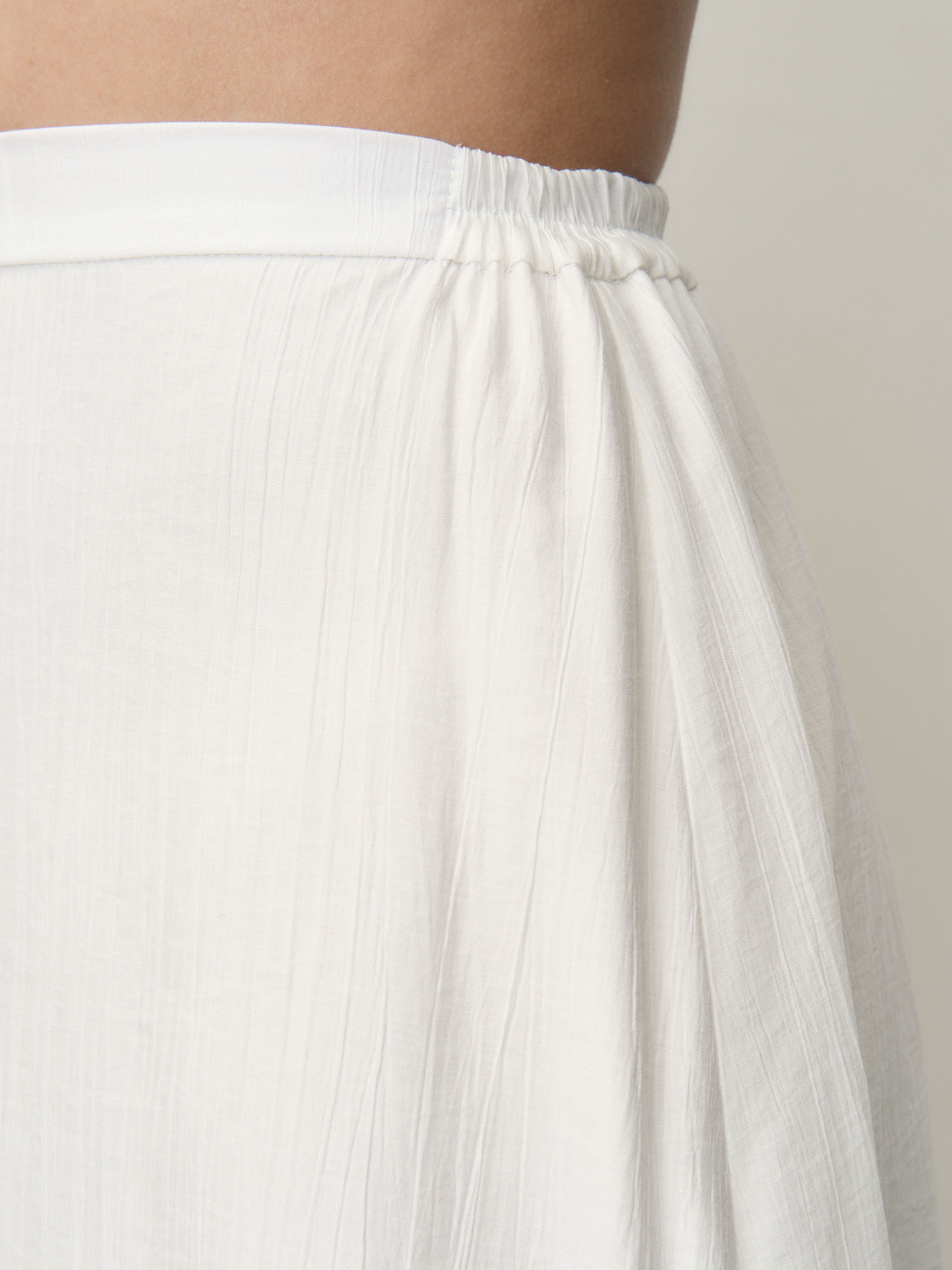 Эластичный пояс для комфортной посадки, легкая струящаяся ткань, аккуратные швы, фактурная поверхность.