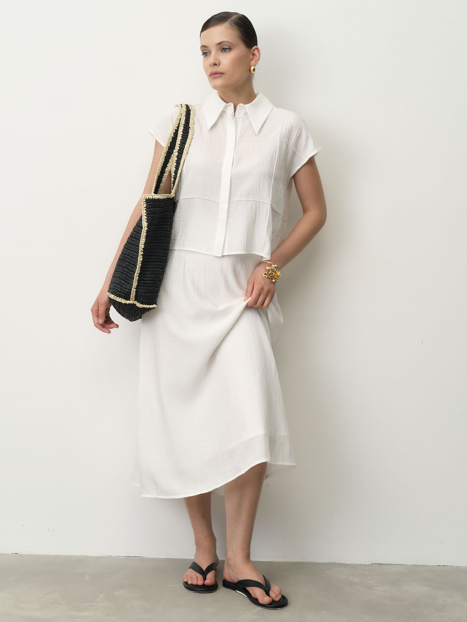Белый — свежий и универсальный оттенок, придающий образу легкость и чистоту.